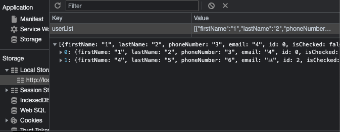 이와 같이 데이터를 삽입하고 저장하면 localStorage에 정상적으로 등록되는 것을 볼 수 있다.